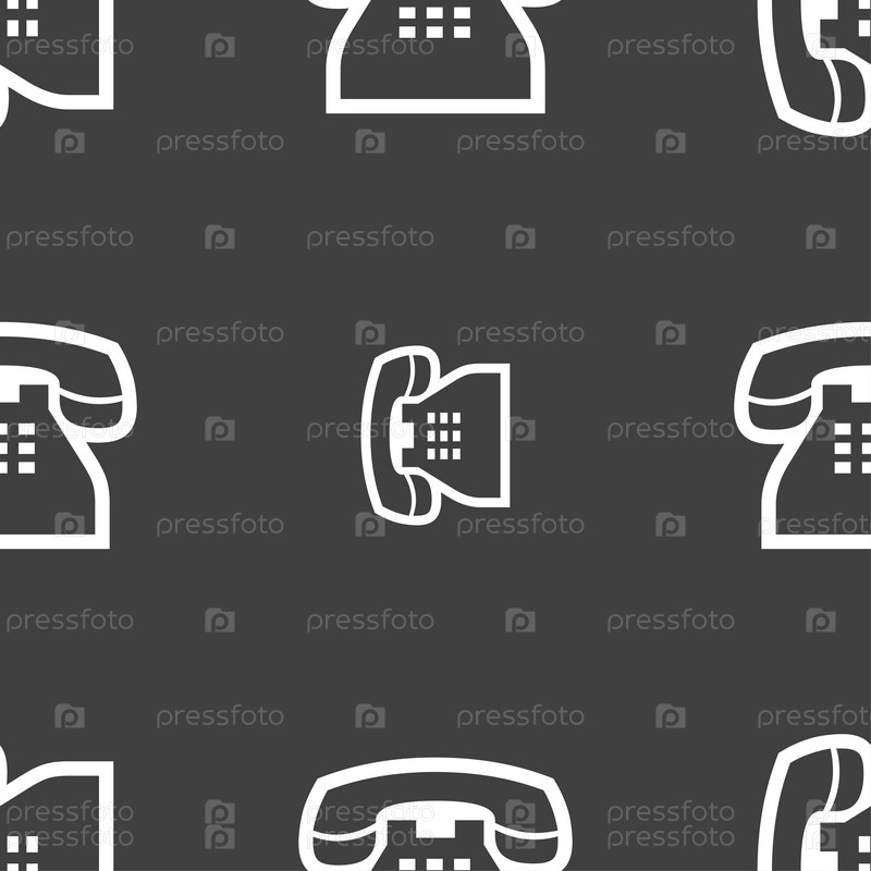 Ретро телефон телефон значок знак. Бесшовный узор на сером фоне. Вектор