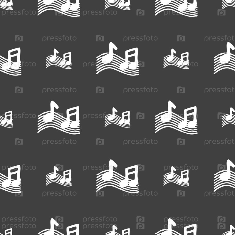 Ноты, музыка, рингтон значок знак. Бесшовный узор на сером фоне. Вектор