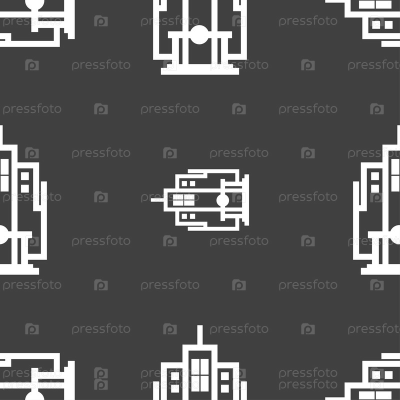 Небоскреб значок знак. Бесшовный узор на сером фоне. Вектор