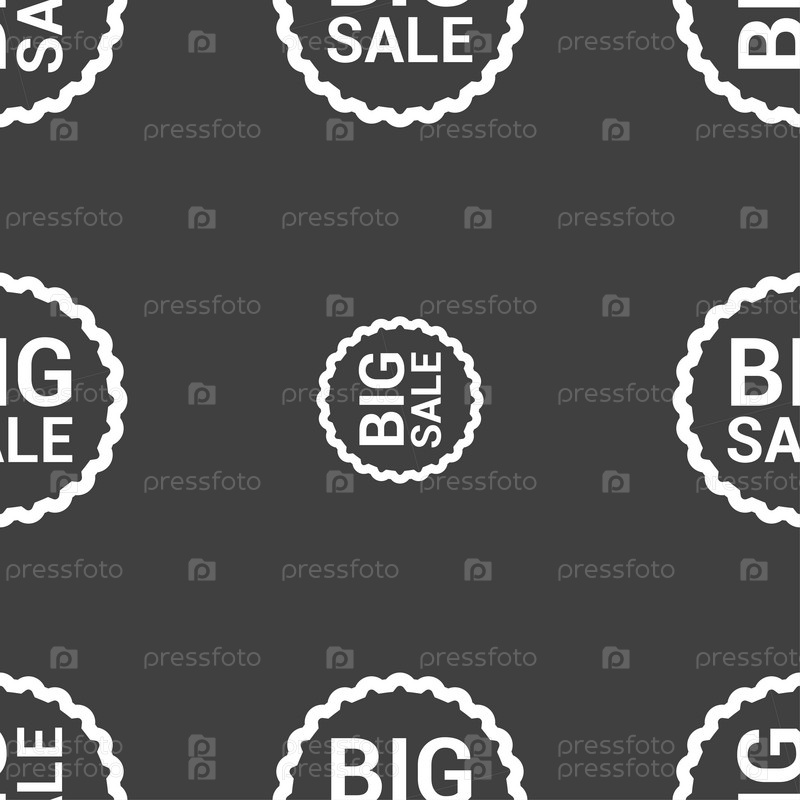 Большие продажи значок знак. Бесшовный узор на сером фоне. Вектор