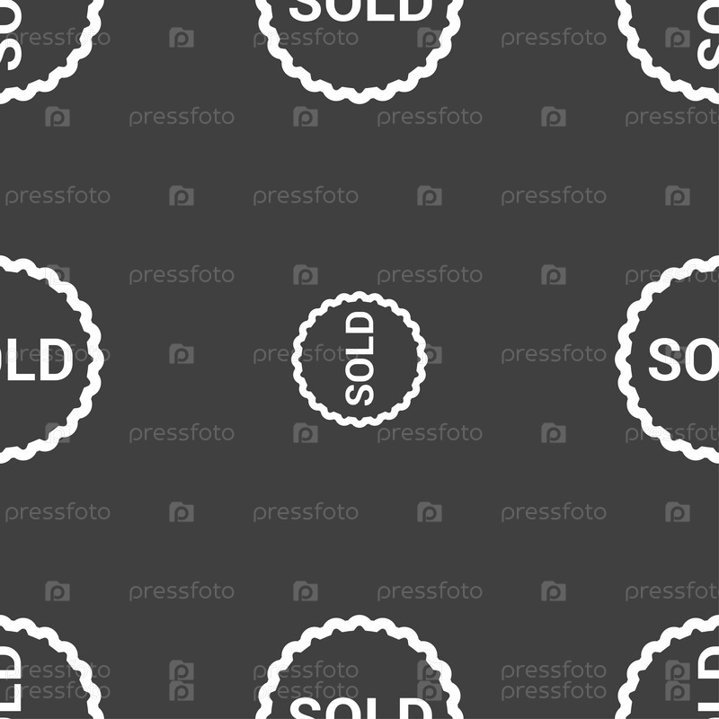 Продано значок знак. Бесшовный узор на сером фоне. Вектор