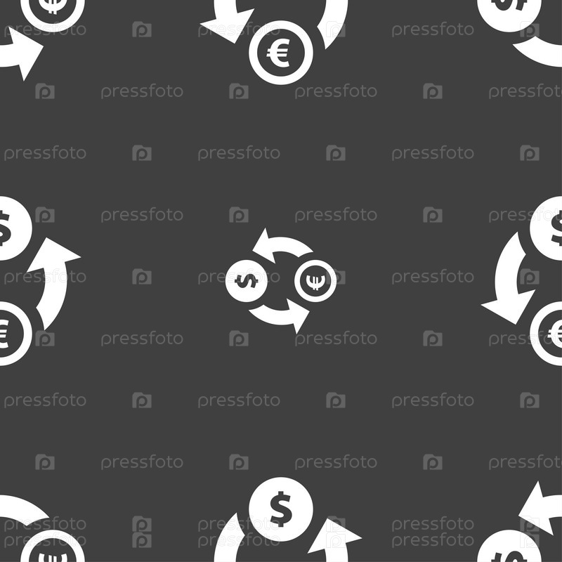 Значок знак Обмен валюты. Бесшовный узор на сером фоне. Вектор