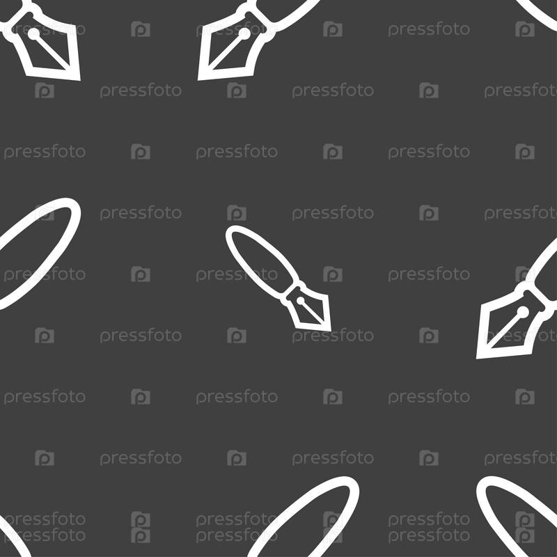 Перо значок знак. Бесшовный узор на сером фоне. Вектор