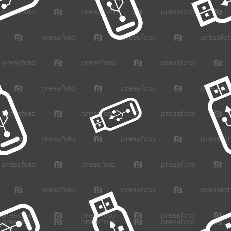 Знак значка USB-флэш диска. Бесшовный узор на сером фоне. Вектор