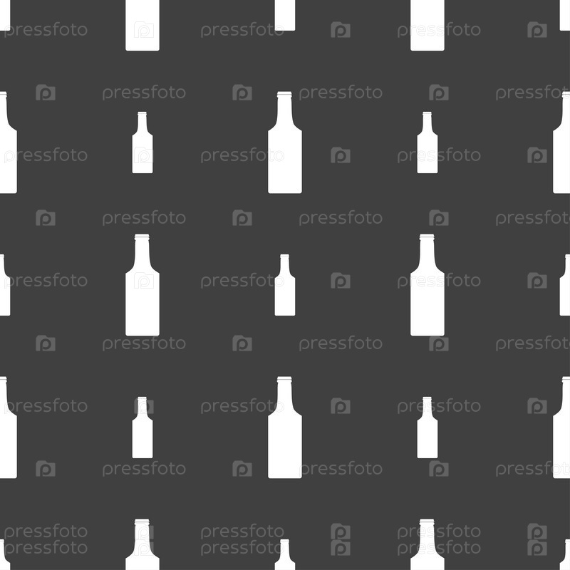 Бутылка значок знак. Бесшовный узор на сером фоне. Вектор