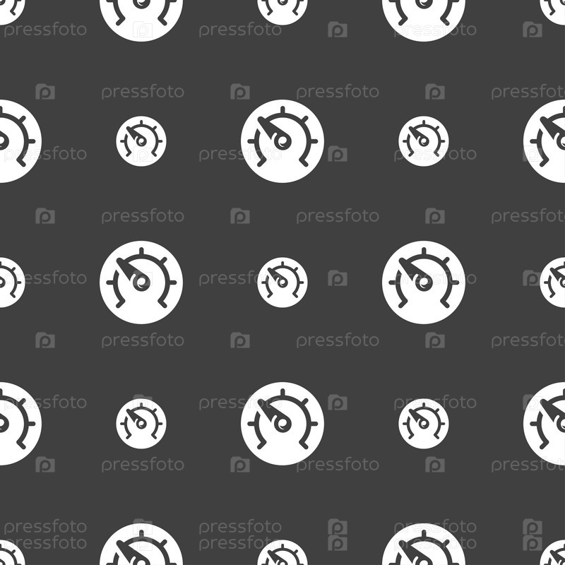 Скорость, спидометр значок знак. Бесшовный узор на сером фоне. Вектор