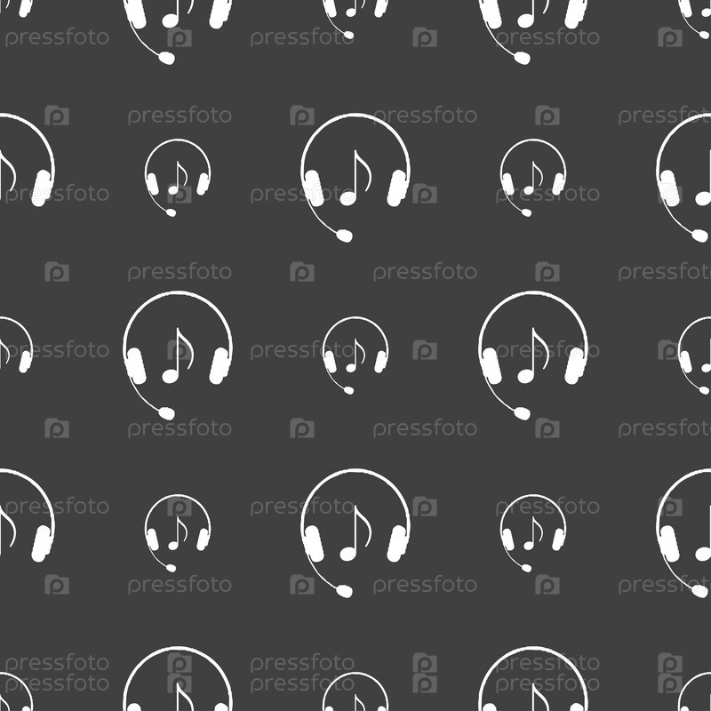Гарнитуры значок знак. Бесшовный узор на сером фоне. Вектор