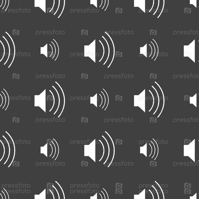 Объем, знак значок звука. Бесшовный узор на сером фоне. Вектор