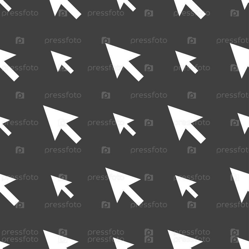 Курсор в виде стрелки, компьютерной мыши значок знак. Бесшовный узор на сером фоне. Вектор