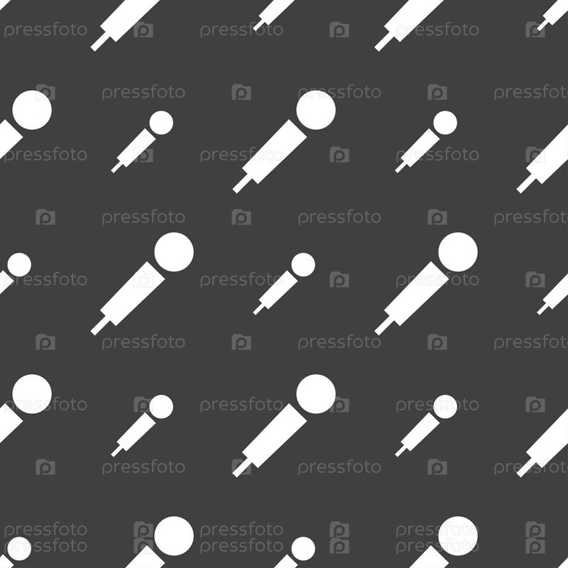 Значок микрофона знак. Бесшовный узор на сером фоне. Вектор