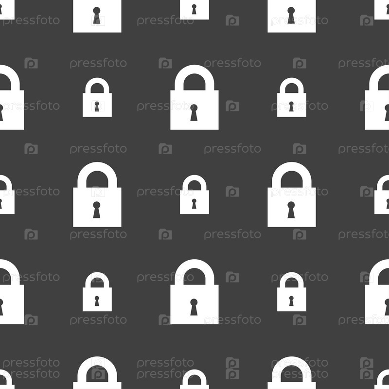Закрытые знак значок блокировки. Бесшовный узор на сером фоне. Вектор