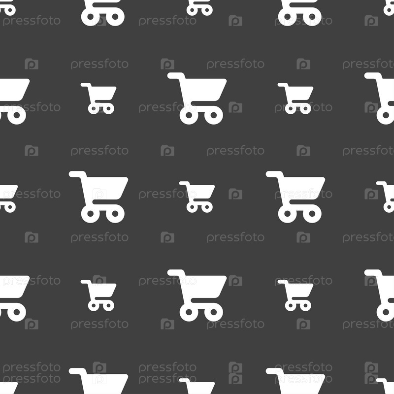 Торговый знак значок Корзина. Бесшовный узор на сером фоне. Вектор
