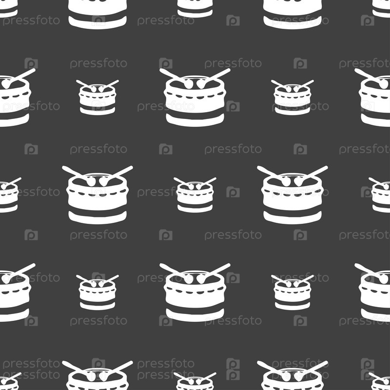 Барабан значок знак. Бесшовный узор на сером фоне. Вектор