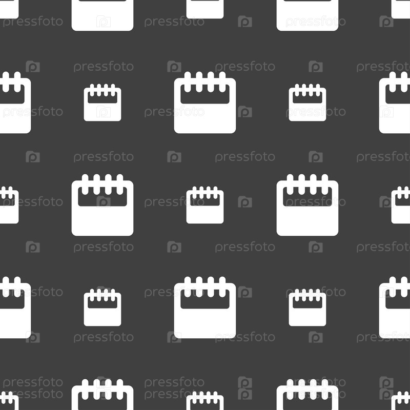 Блокнот, знак значок календаря. Бесшовный узор на сером фоне. Вектор