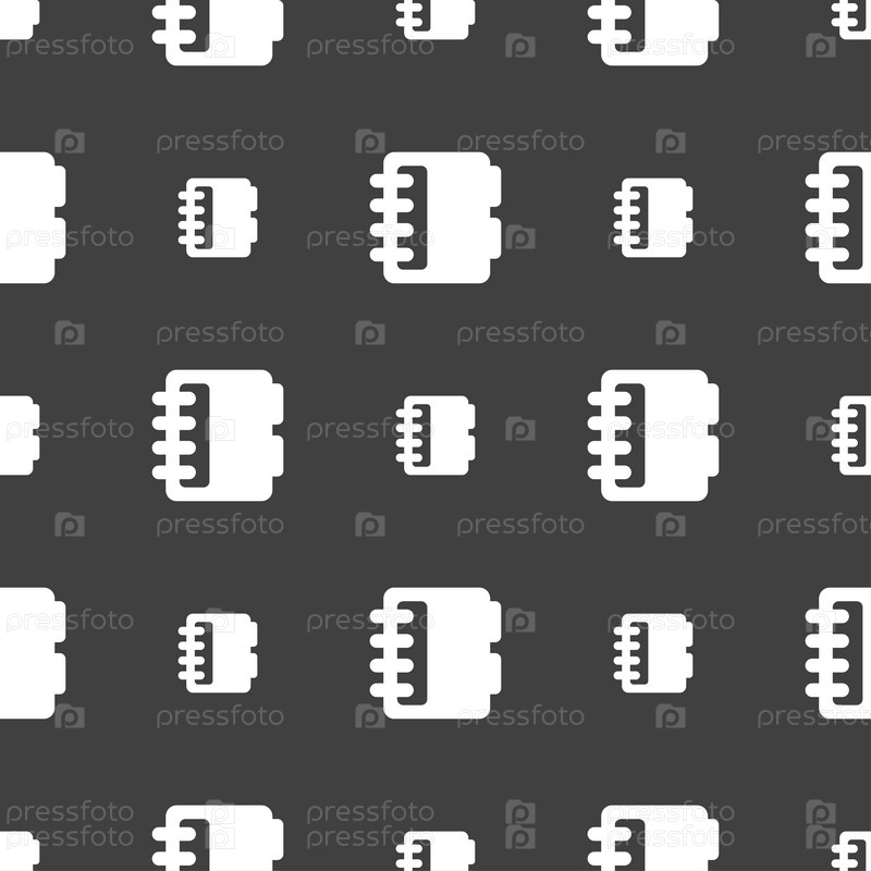 Блокнот, знак значок календаря. Бесшовный узор на сером фоне. Вектор