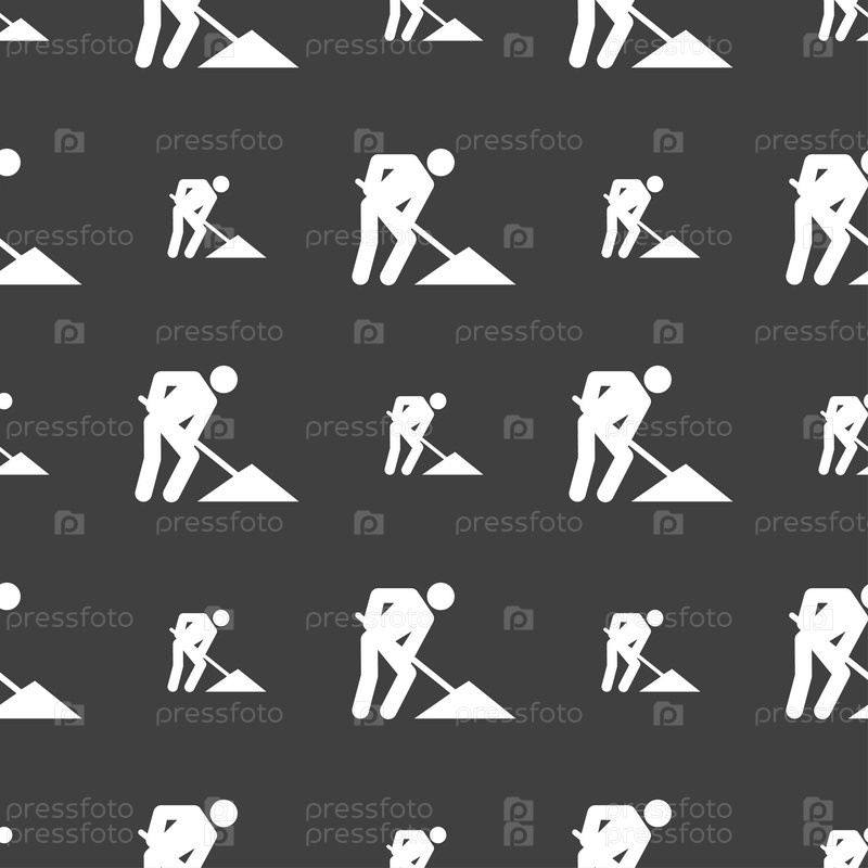 Ремонт дороги, строительные работы значок знак. Бесшовный узор на сером фоне. Вектор