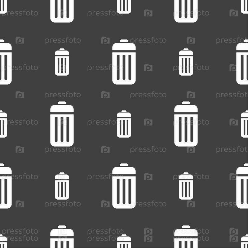 Знак значок корзины. Бесшовный узор на сером фоне. Вектор