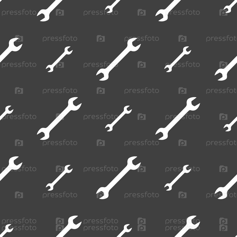Гаечный ключ значок знак. Бесшовный узор на сером фоне. Вектор