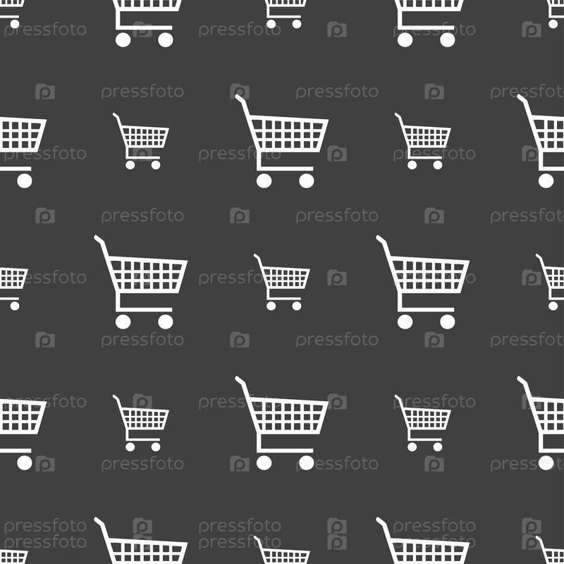 Торговый знак значок Корзина. Бесшовный узор на сером фоне. Вектор