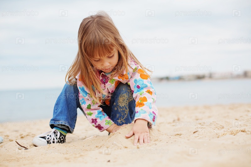 Девочка играет на пляже