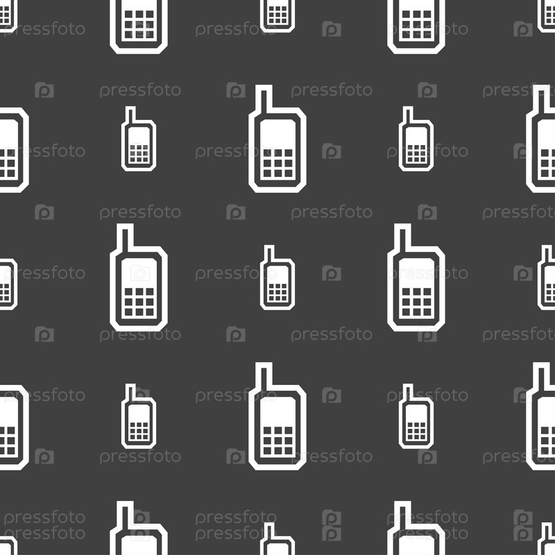 Мобильный телефон значок знак. Бесшовный узор на сером фоне. Вектор
