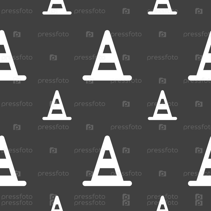 Дорожный знак значок конуса. Бесшовный узор на сером фоне. Вектор