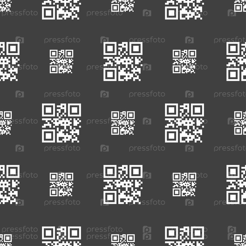 QR-код значок символа. Бесшовный узор на сером фоне. Вектор