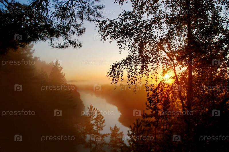 Раннее туманное утро на реке