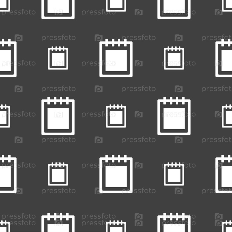 Блокнот значок знак. Бесшовный узор на сером фоне. Вектор