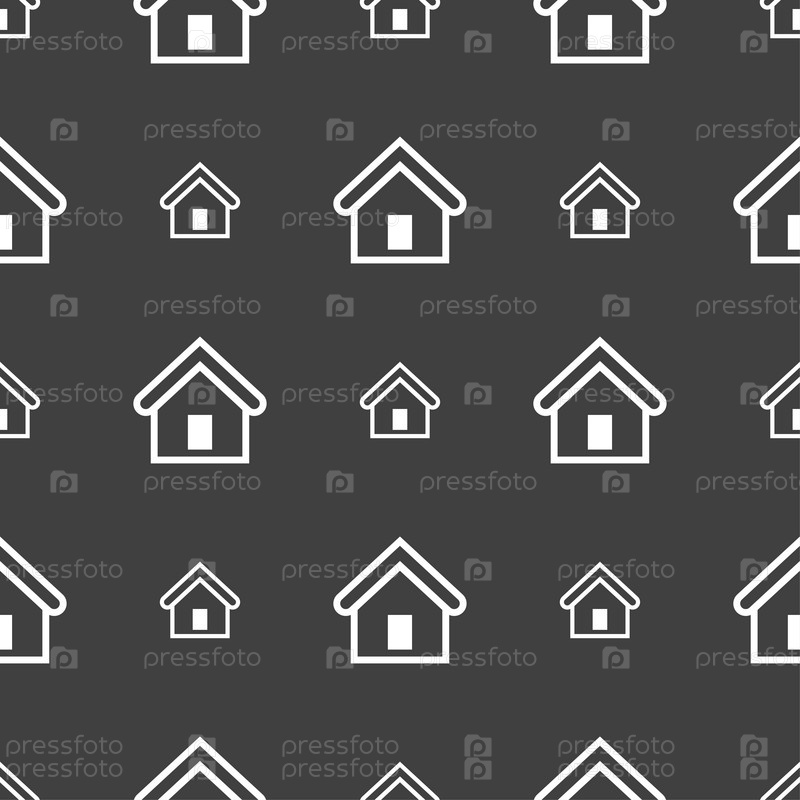 Дом значок знак. Бесшовный узор на сером фоне. Вектор