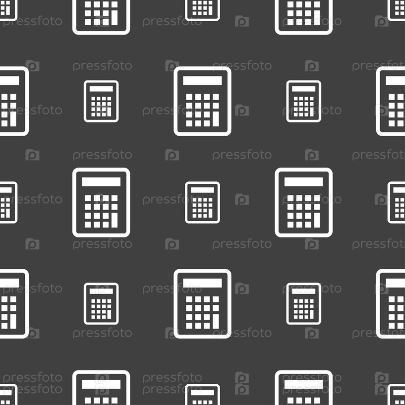 Калькулятор значок знак. Бесшовный узор на сером фоне. Вектор