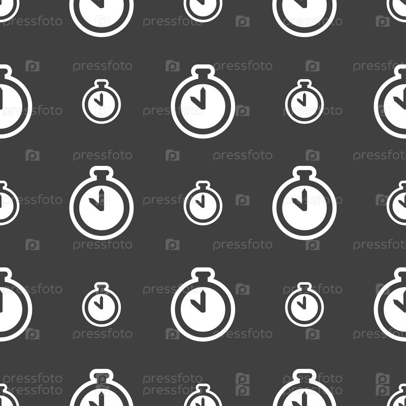 Секундомер значок знак. Бесшовный узор на сером фоне. Вектор
