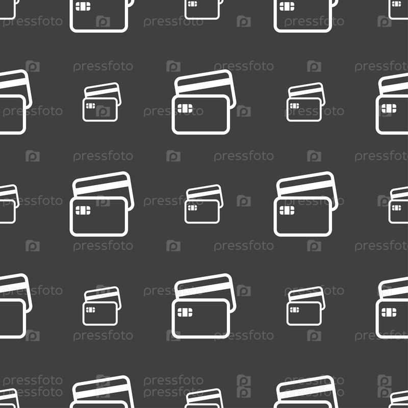 Кредитной карты значок знак. Бесшовный узор на сером фоне. Вектор