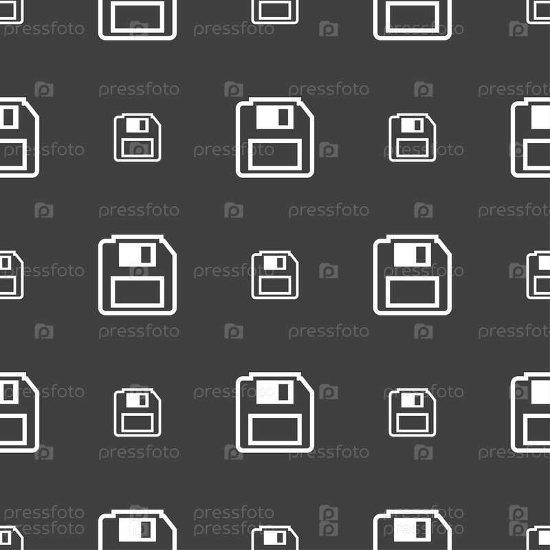 Дискета значок знак. Бесшовный узор на сером фоне. Вектор