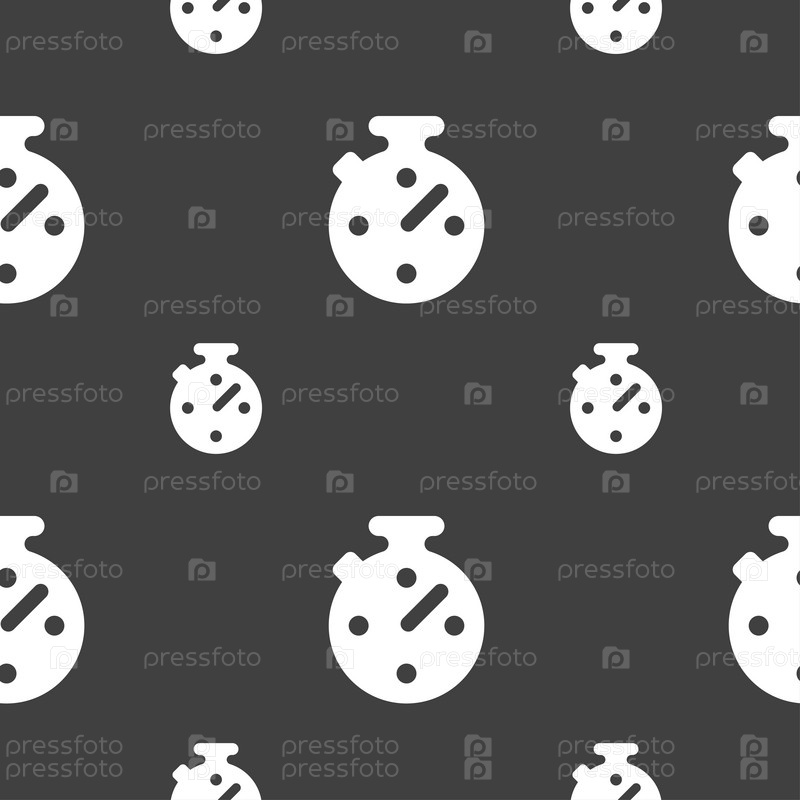Таймер, секундомер значок знак. Бесшовный узор на сером фоне. Вектор
