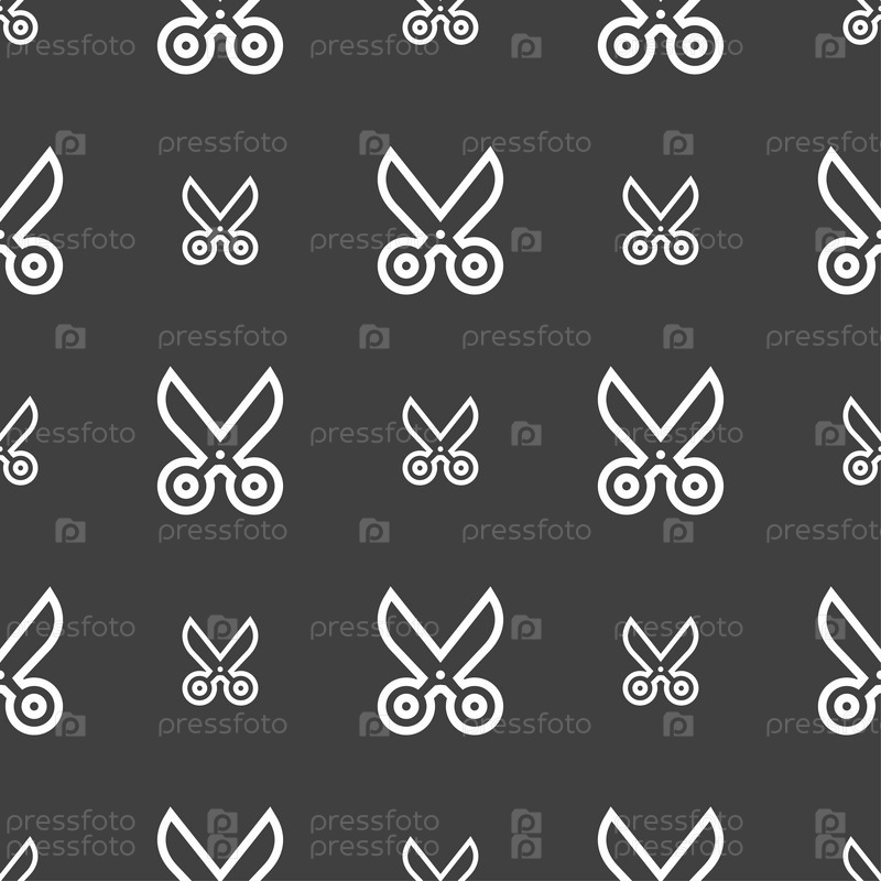 Ножницы значок знак. Бесшовный узор на сером фоне. Вектор