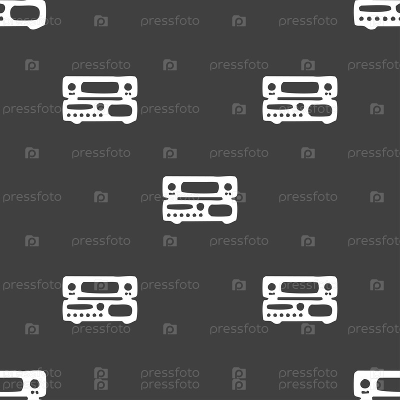 Радиоприемник, усилитель значок знак. Бесшовный узор на сером фоне. Вектор