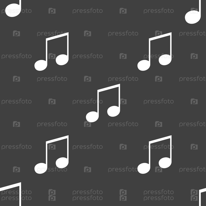 Ноты, музыка, рингтон значок знак. Бесшовный узор на сером фоне. Вектор