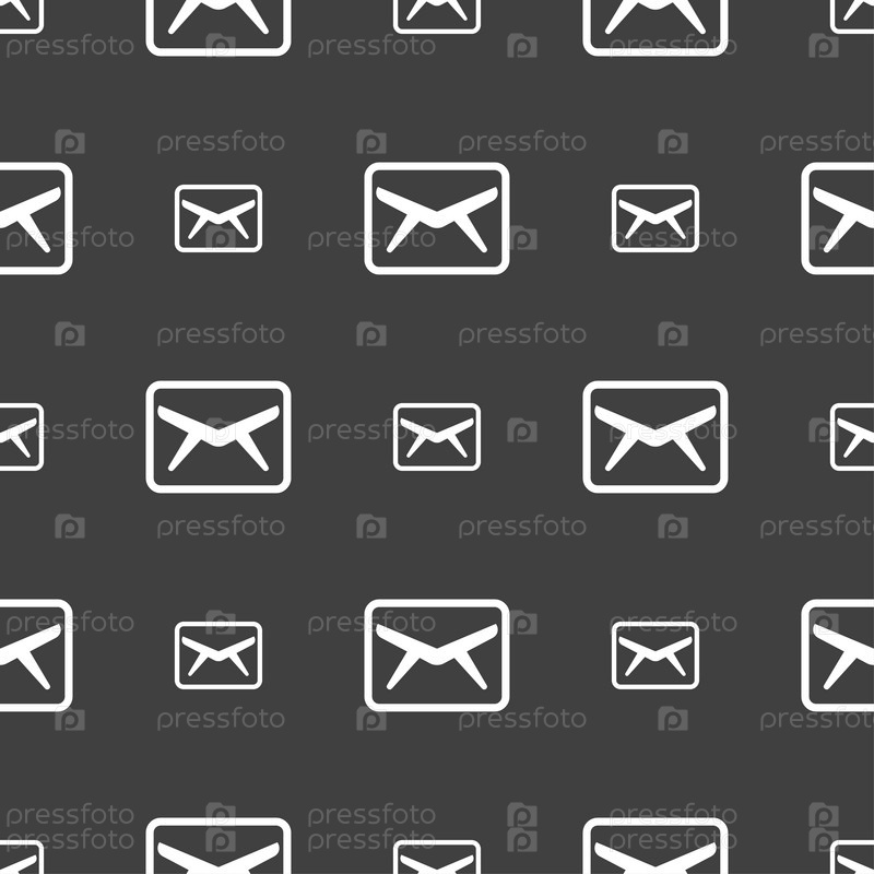 Почта, конверт, сообщения значок знак. Бесшовный узор на сером фоне. Вектор