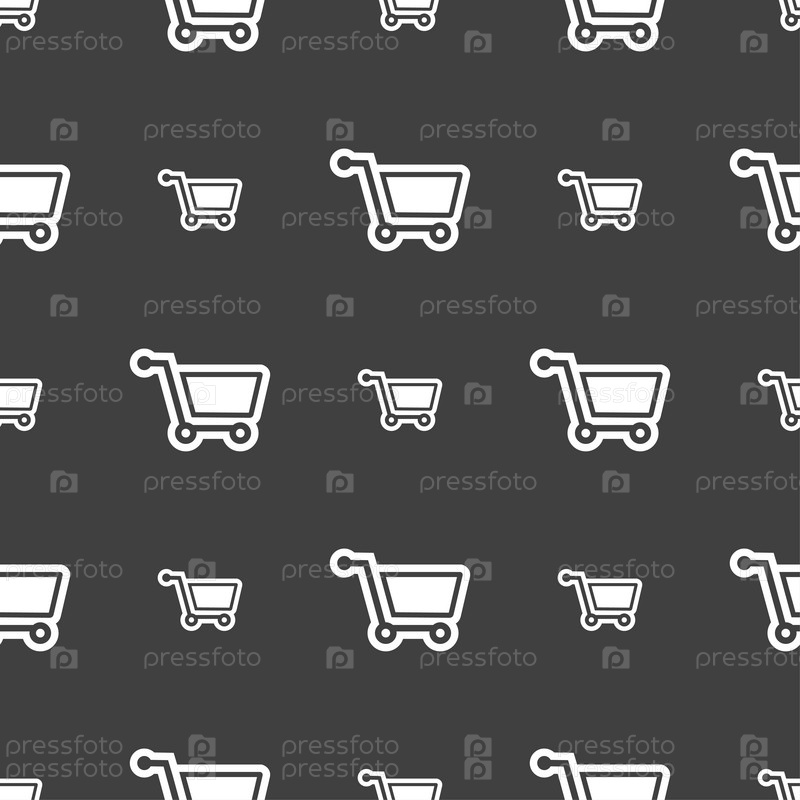 Торговый знак значок Корзина. Бесшовный узор на сером фоне. Вектор