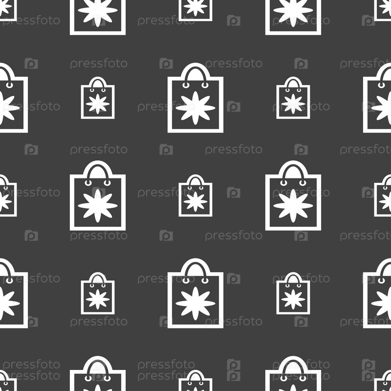 Корзина значок знак. Бесшовный узор на сером фоне. Вектор