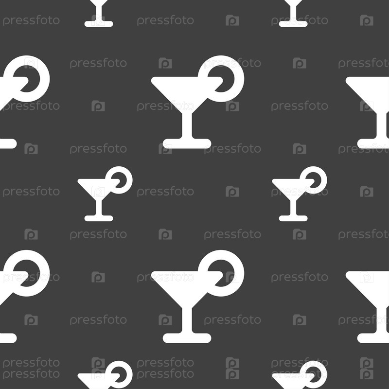 Напиток, коктейль с лимоном значок знак. Бесшовный узор на сером фоне. Вектор