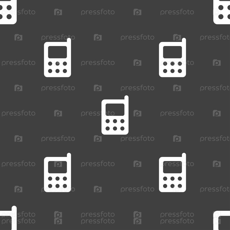 Мобильный телефон значок знак. Бесшовный узор на сером фоне. Вектор