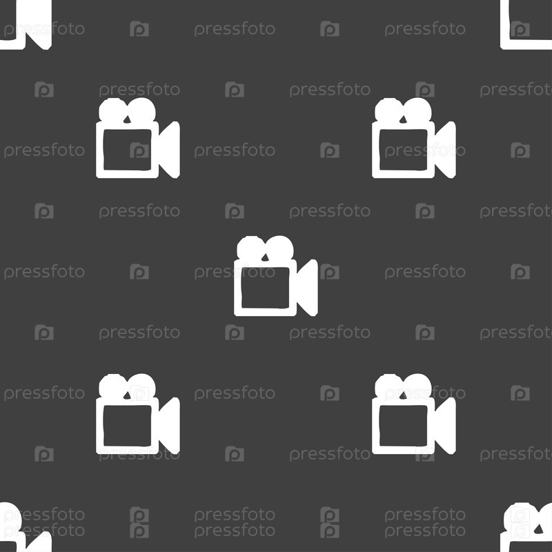 Видеокамера значок знак. Бесшовный узор на сером фоне. Вектор