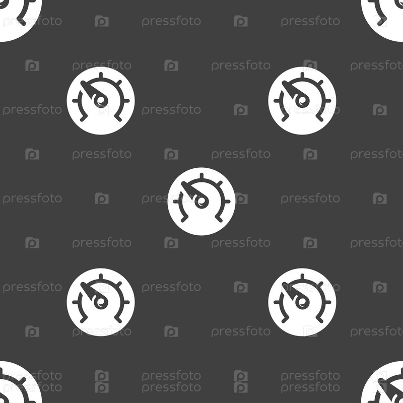 Скорость, спидометр значок знак. Бесшовный узор на сером фоне. Вектор