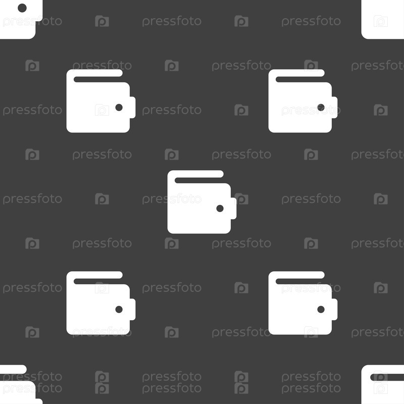 Кошелек значок знак. Бесшовный узор на сером фоне. Вектор