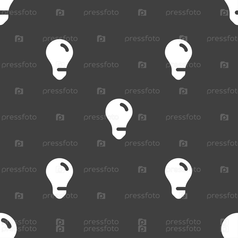 Лампочки, идея значок знак. Бесшовный узор на сером фоне. Вектор