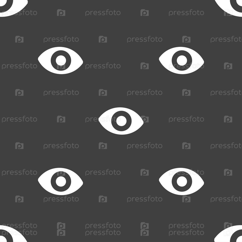 Шестое чувство, знак значок глаза. Бесшовный узор на сером фоне. Вектор