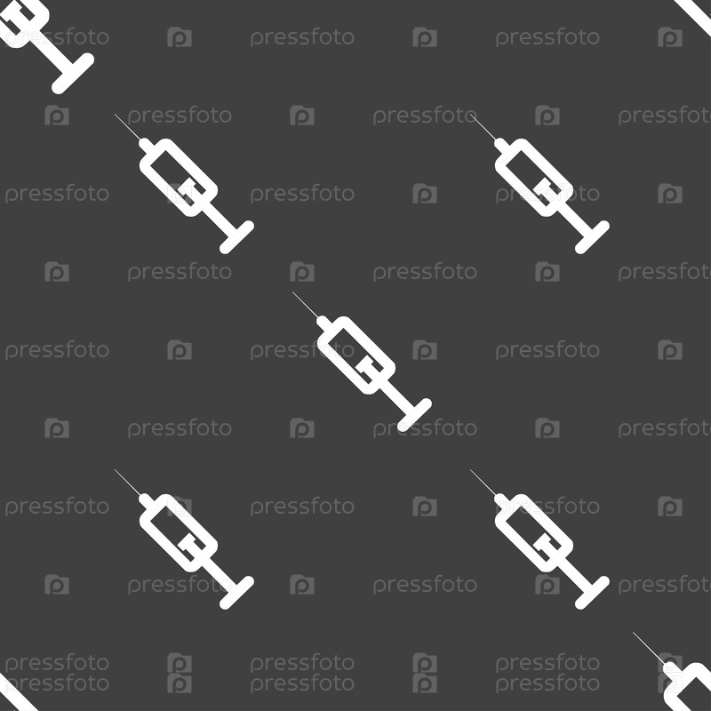 Шприц значок знак. Бесшовный узор на сером фоне. Вектор