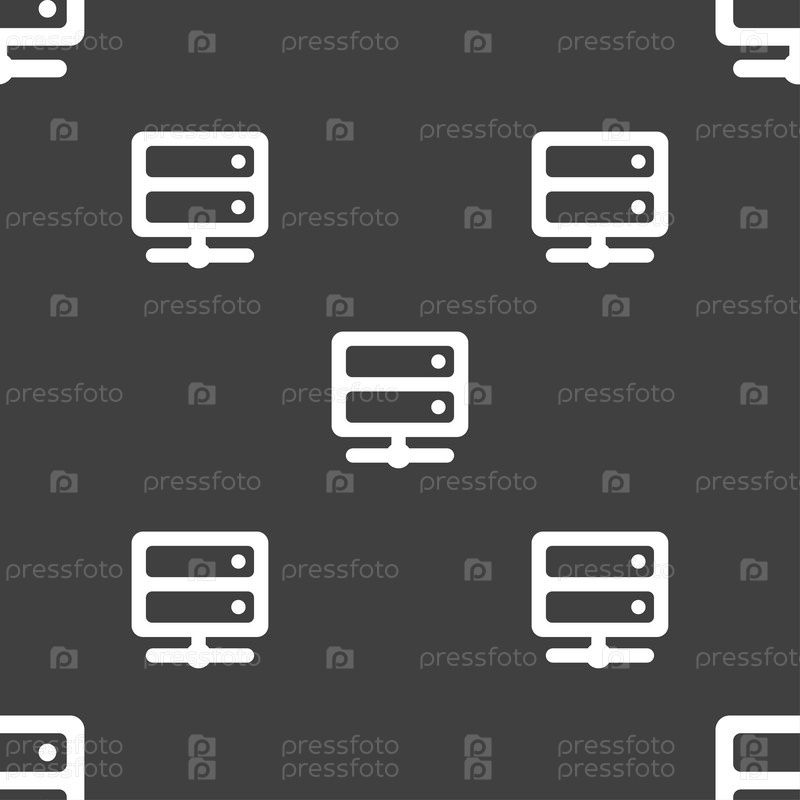Сервер значок знак. Бесшовный узор на сером фоне. Вектор